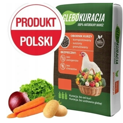 GLEBOKURACJA to granulowany nawóz z obornika kurzego, który nie tylko zapewnia roślinom niezbędne do rozwoju składniki, ale również dostarcza glebie materii organicznej oraz zwiększa jej aktywność mikrobiologiczną, przyczyniając się do powstawania próchnicy. To z kolei zwiększa jej odporność na suszę.