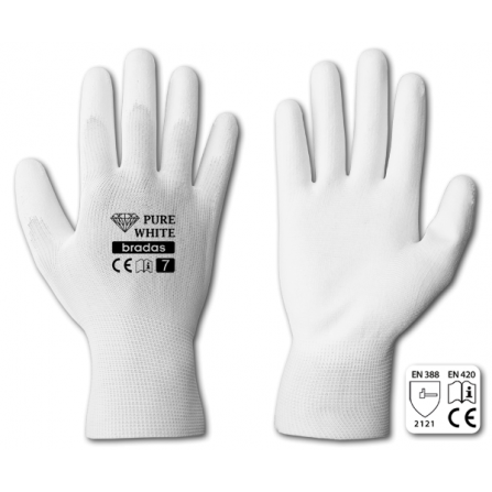 Rękawice ochronne PURE WHITE poliuretan, rozmiar 7