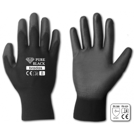 Rękawice ochronne PURE BLACK poliuretan, rozmiar 8